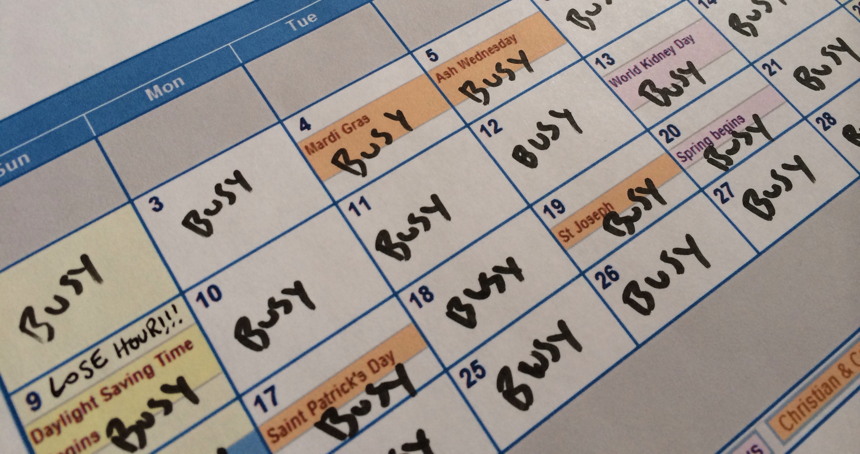 A busy life has a crammed calendar before time is set aside for priorities and people.